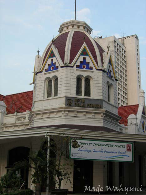 Secara tak sengaja saya melewati dan memotret bangunan Balai Pemuda Surabaya ini, sewaktu perjalanan saya ke Surabaya di tahun 2006 lalu. Bentuk bangunannya memang berbeda dari yang lain. Setelah iseng-iseng saya googling di internet, ternyata bangunan ini adalah bangunan bersejarah, lho. Yuk, simak sejarah Balai Pemuda Surabaya yang saya temukan di wikipedia.