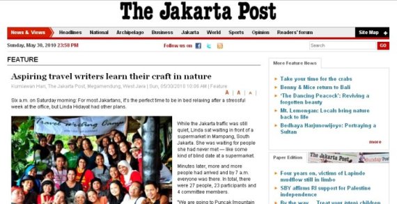 Saya ikut kelas Travel Writing Camp di Kampung Awan. Tempatnya bagus banget. Saya ketemu banyak banget teman baru disana. Liputan acara Travel Writing Camp dimuat di Jakarta Post, loh. Ada nama saya lagi. Hahayy *narsis*