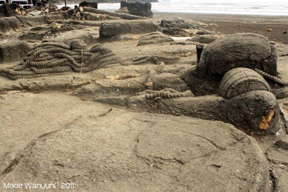 Di pinggir batu Malin Kundang terdapat relief yang menceritakan legenda Malin Kundang dan juga warung-warung yang menjual kelapa muda. Sedap juga menikmati manisnya air kelapa muda sambil menikmati cerita Malin Kundang. Ada beberapa fotografer lokal yang duduk-duduk di sekitar batu Malin Kundang. Menurut informasi dari Pak Basori, biasanya pengunjung tidak diperbolehkan mengambil foto Batu Malin Kundang dengan kamera pribadi, harus melalui jasa fotografer lokal tersebut. Tapi waktu saya kesana, saya bebas-bebas aja kok memotret dengan kamera pribadi 🙂