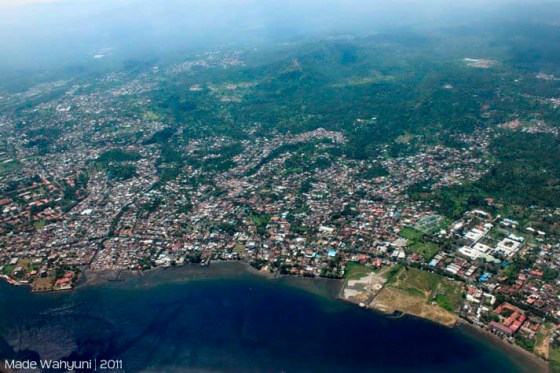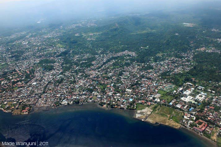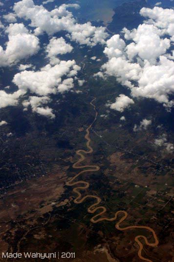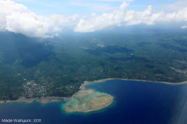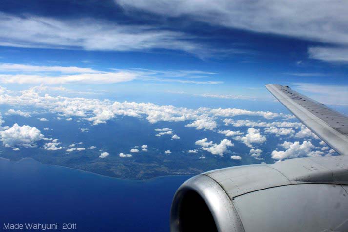 Akhirnya, untuk pertamakalinya saya menjejaki tanah Manado bersama dengan karib saya Katarina Wulandari, yay!.  Kami harus menempuh perjalanan udara selama 3 jam. Bisa dibayangkan dong, orang seaktif kami disuruh duduk manis di pesawat selama 3 jam? mati gaya pastinya. Dan akhirnya kami main-main dengan kamera, memotret lewat jendela pesawat.